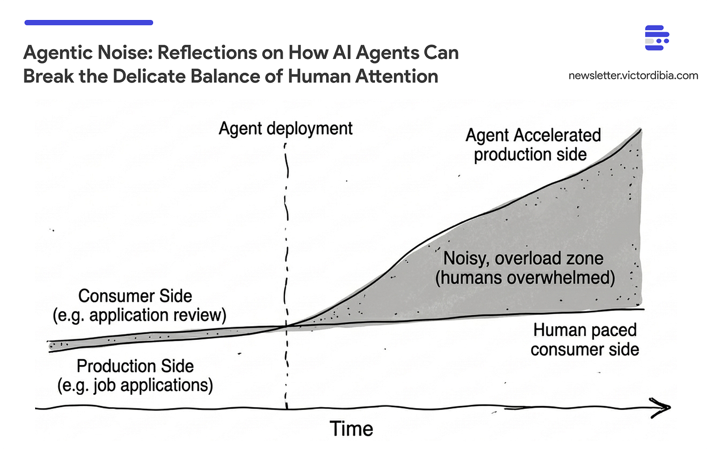 As AI models become more capable (AI agents that can act with some autonomy), there is a real chance that poorly considered AI agent (assymetric) deployments break this balance. In Designing Multi-Agent Systems, I introduce the concept of agentic noise to capture this phenomena.