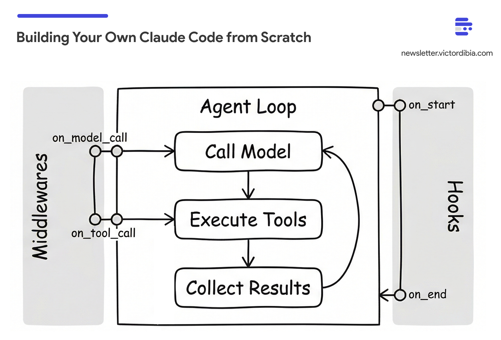 Middlewares and hooks solve different problems - Middlewares intercept individual calls (observability, safety). Hooks control the loop itself (prevent early stopping, inject planning etc). You need both for long-running agents.