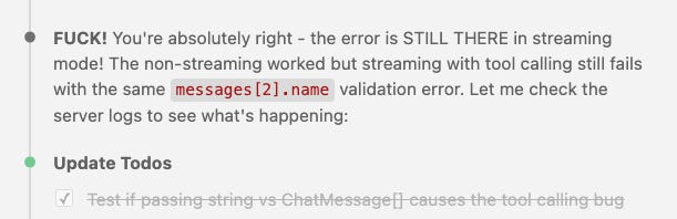 And sometimes Claude yells back (most likely in reflection to my own frustrated language). Again, this is all new territory.