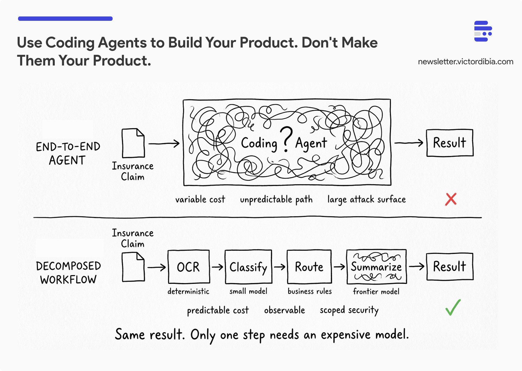 The short story is: you often need to do just one thing very well. An agent that can do everything at high cost and unpredictable behavior is not necessarily a good fit for your business at scale.
