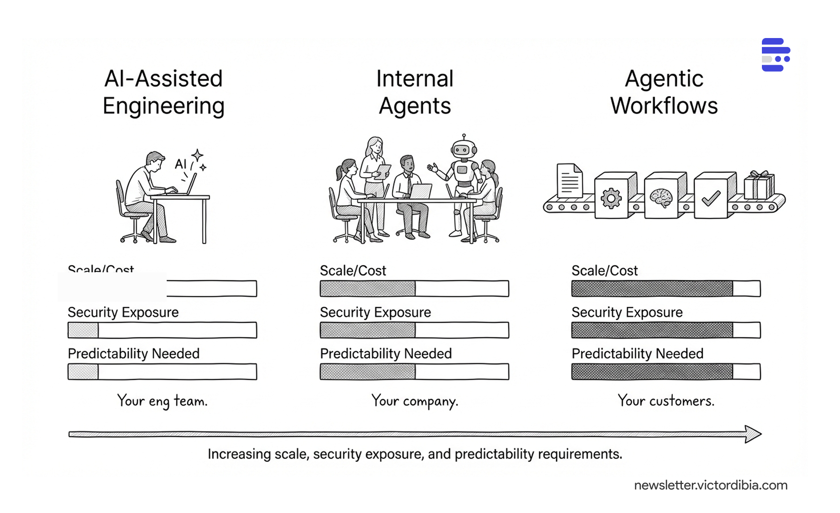 These sit in a sweet spot. You control the data and the environment, your users aren’t adversarial, and the scale is manageable - hundreds of employees, not millions of customers. When the agent gets something wrong at internal scale, the blast radius is small. At customer scale, it isn't. Many companies will find their first production agent deployments here - not in their product, but in their operations.
